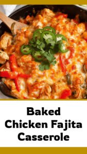 Easy, cheesy baked chicken fajita casserole! A healthy, one-pan dinner with bell peppers & onions. Perfect for meal prep and family meals. #fajitacasserole, #easydinner, #chickenrecipes, #healthymeals, #mealprep